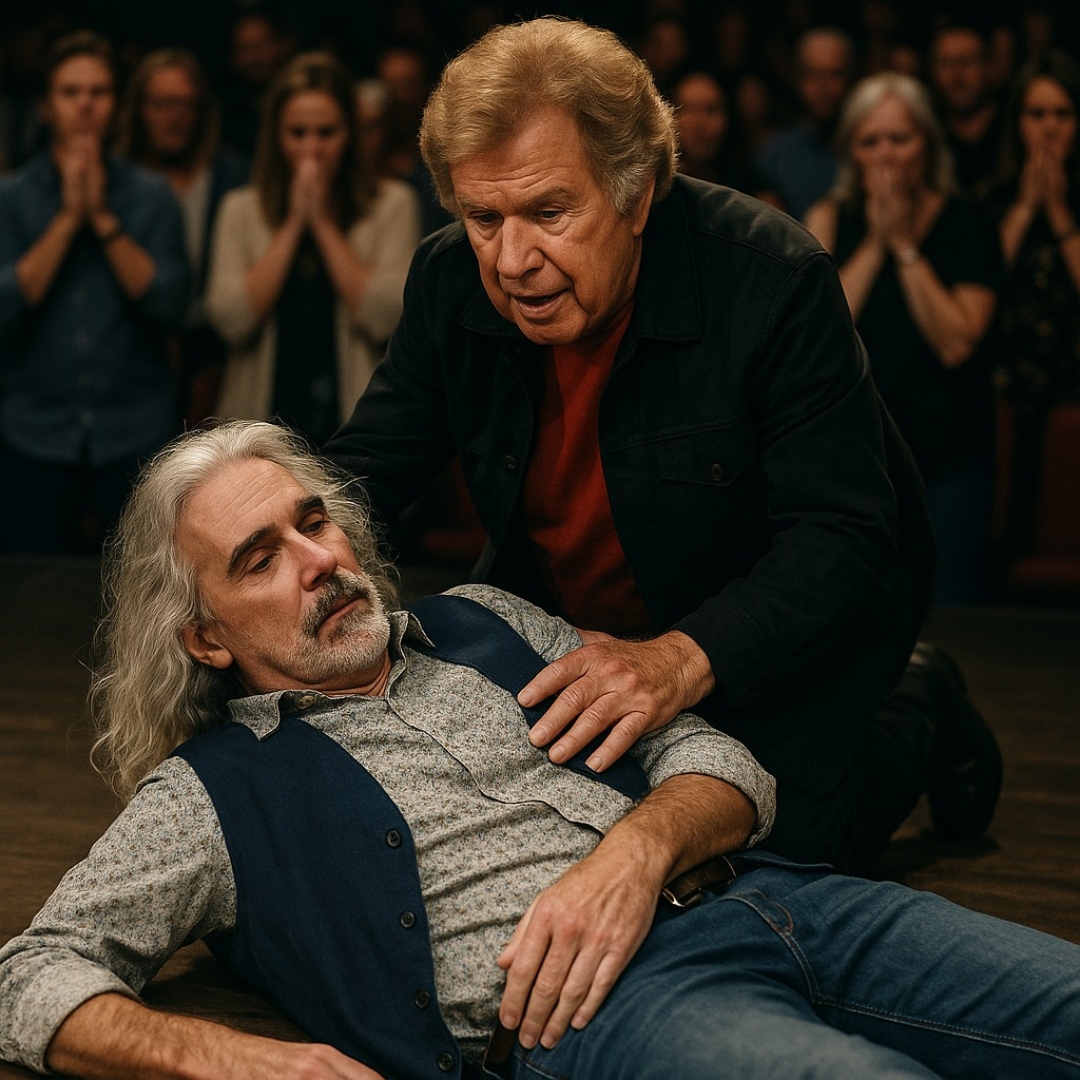 Witnesses say Gaither’s face had gone pale. His hands trembled. And before anyone could process what was happening, he rushed straight across the stage toward Guy Penrod — grabbing his shoulder with a grip that looked less like encouragement and more like fear.