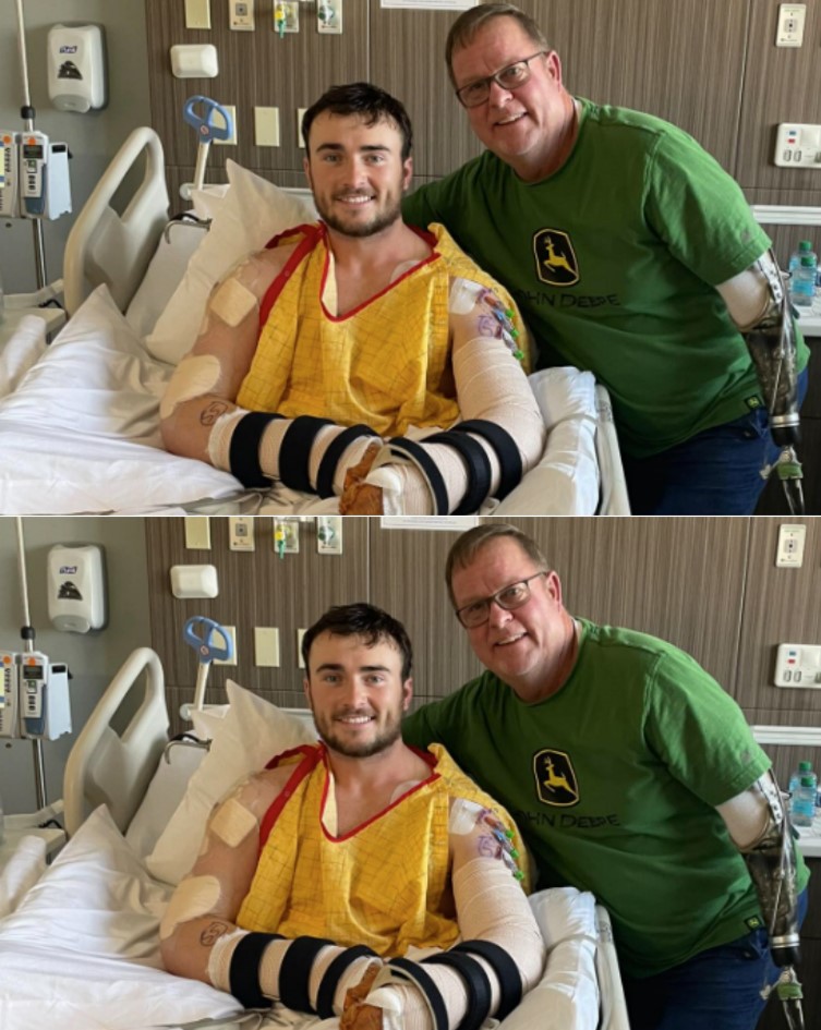 The hospital room had been quiet for most of the morning, the kind of quiet that hangs heavy with waiting. Machines hummed softly. Nurses moved in and out with practiced calm. And at the center of it all lay Hunter—young, battered by injury, suspended in that exhausting space between what has already been endured and what may still be coming next.